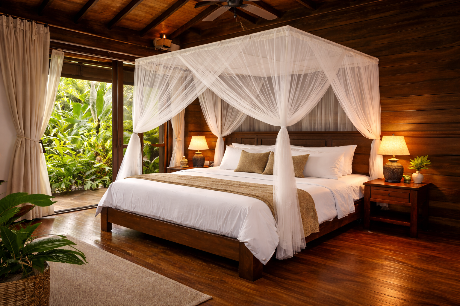 Bright, comfortable rooms with thoughtful details, tropical calm, and the beach only a few steps away through the garden.